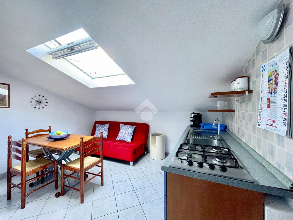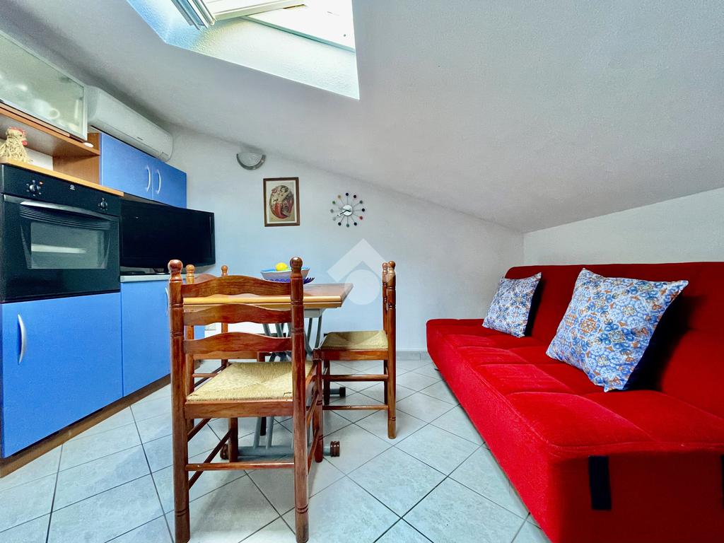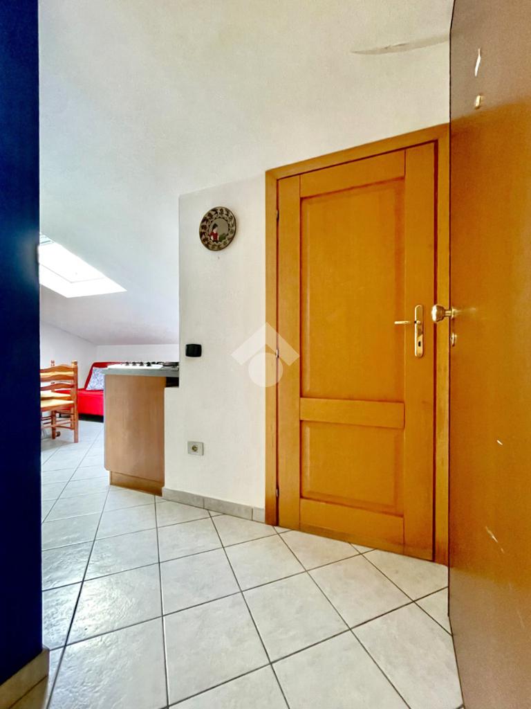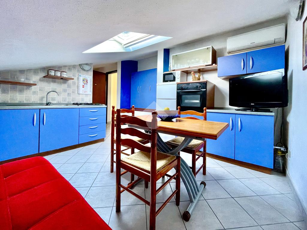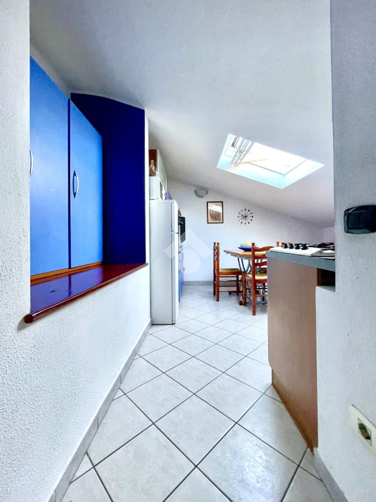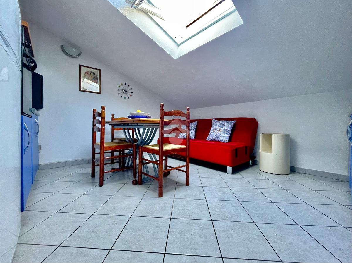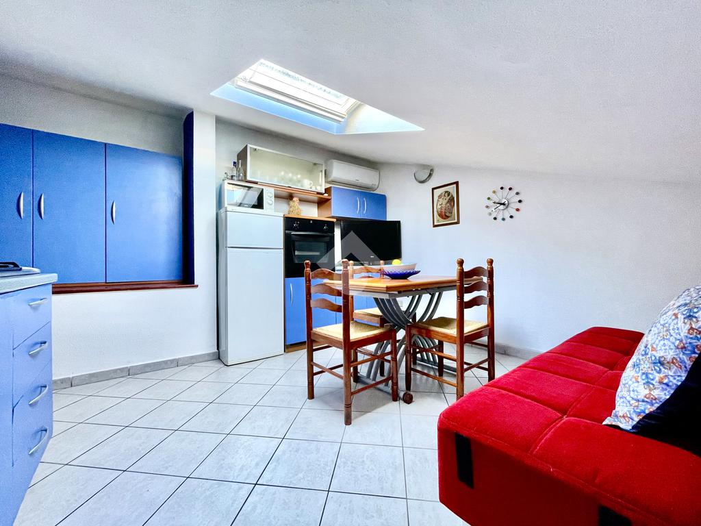 NUORO – Via Ichnusa, in zona residenziale tranquilla e servita, mansarda rifinita, tipologia bilocale. Con ingresso dal vano scala condominiale, utilizzando uno a scelta tra scale e ascensore, si arriva all'ingresso dell'immobile. Varcata la soglia d'ingresso, si viene accolti da un locale adibito a luminoso pranzo-soggiorno con parete cottura. Separato rispetto a questa zona trova spazio un secondo locale adibito a camera da letto matrimoniale, con accesso a un ripostiglio, attualmente allo stato grezzo, ricavato nel sottotetto. Completa l'interno, un bagno completo con doccia e finestrato. Al piano seminterrato è presente un comodo vano cantina.L'immobile si presenta in buono stato manutentivo, è provvisto di condizionamento autonomo e viene venduto con arredi. Consigliamo l'immobile a chi è alla ricerca di un punto d'appoggio con un budget contenuto. Non mutuabile. Costi condominiali: 120 euro all'anno.