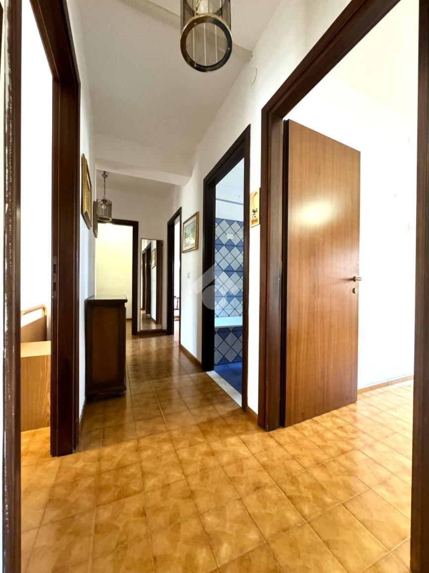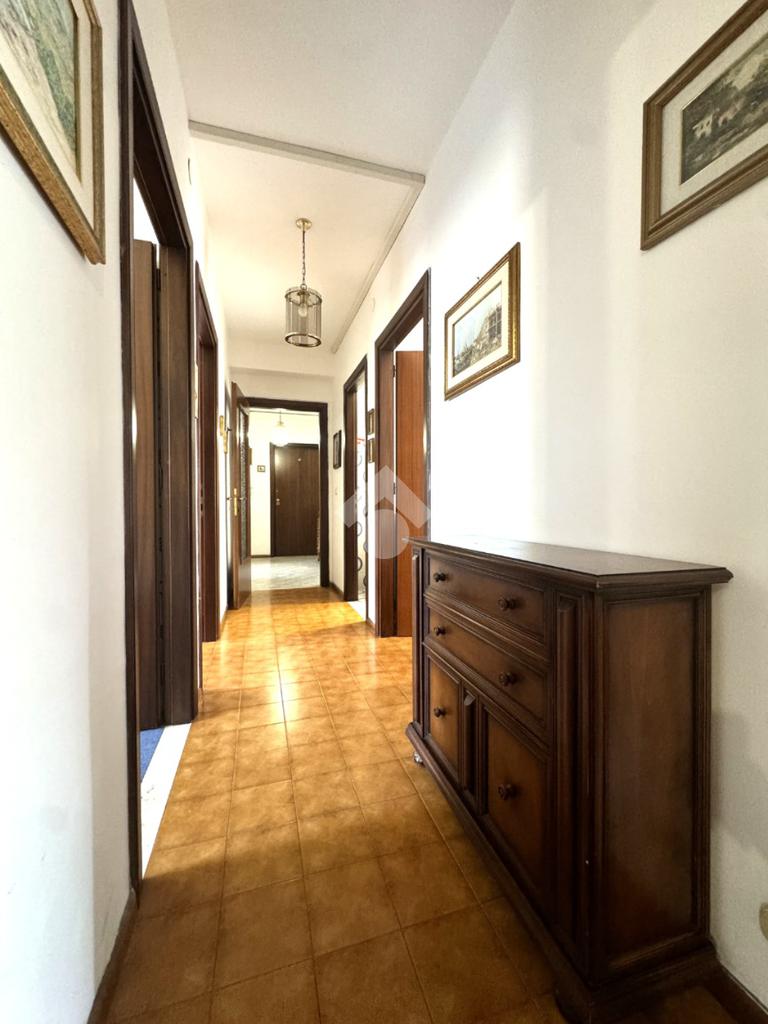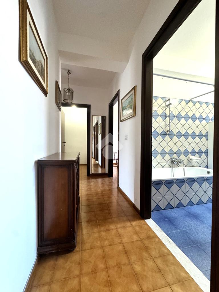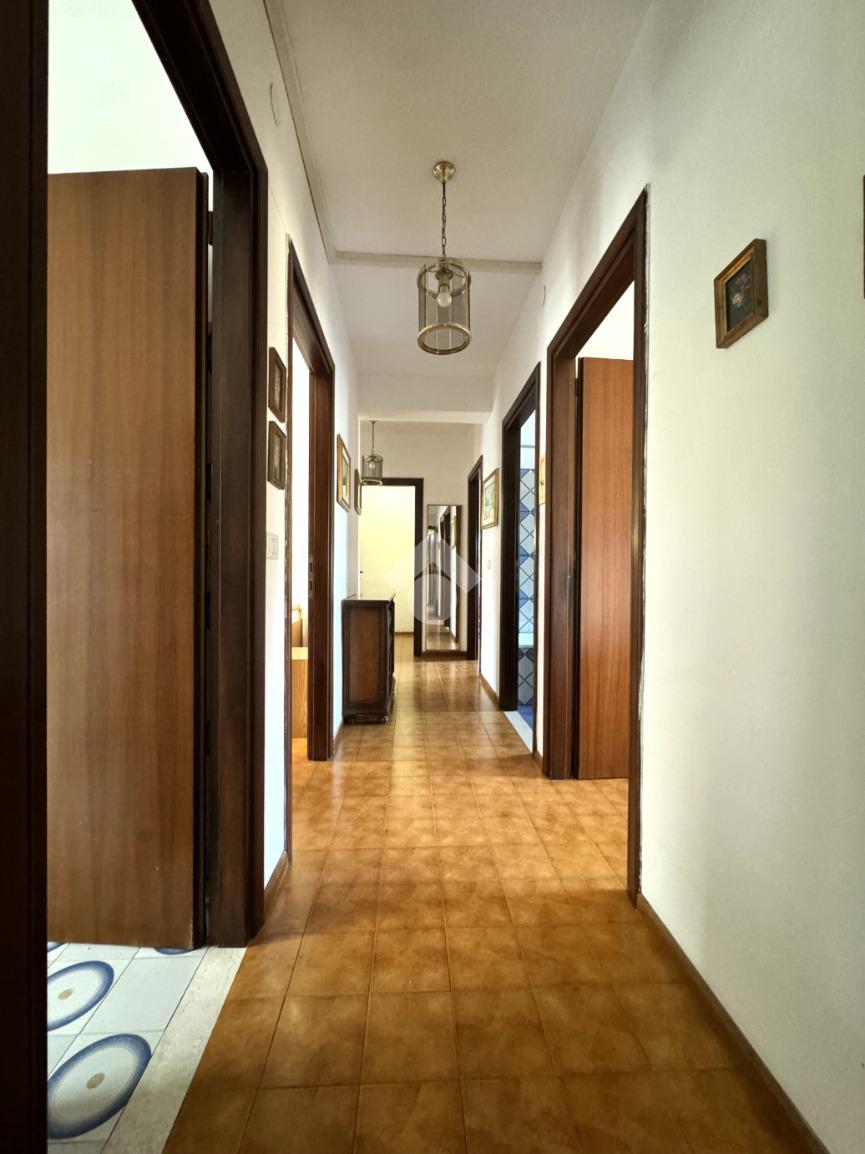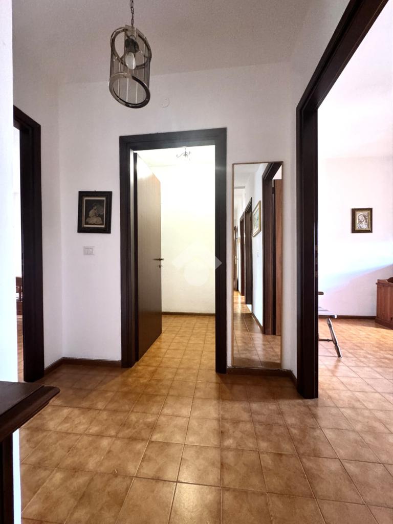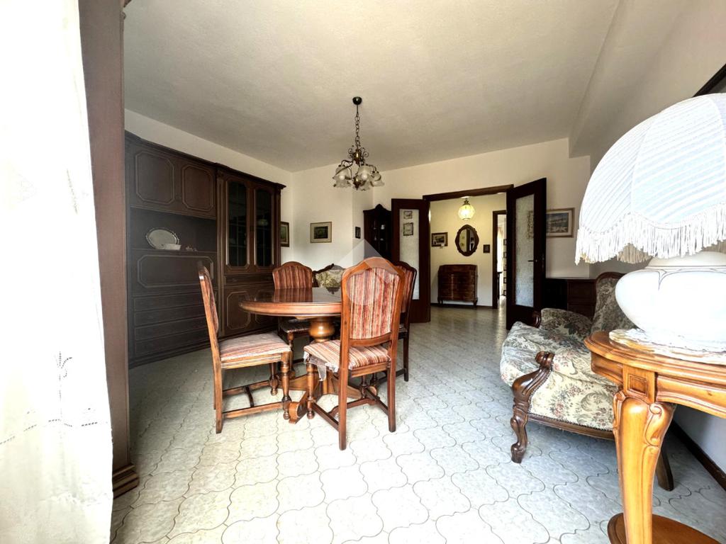 Tramite delle scale comuni o con comodo ascensore, si raggiunge il piano primo, dove si viene accolti da un ampio ingresso che collega tutti gli ambienti della casa. La zona giorno è costituita dal luminoso soggiorno sulla destra e dalla cucina abitabile sulla sinistra dell'ingresso. La zona notte si sviluppa su entrambi i lati del corridoio ed è costituita da quattro camere da letto, due bagni finestrati e un comodo ripostiglio. Al piano seminterrato è presente un ampio box auto con comodo accesso. L'immobile si presenta in buono stato manutentivo, è provvisto di riscaldamento autonomo a radiatori e viene venduto con arredi.
