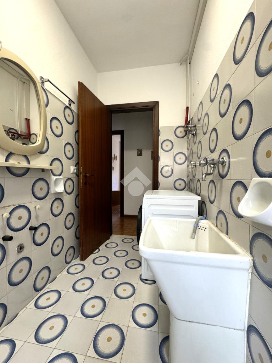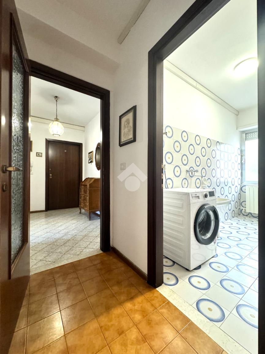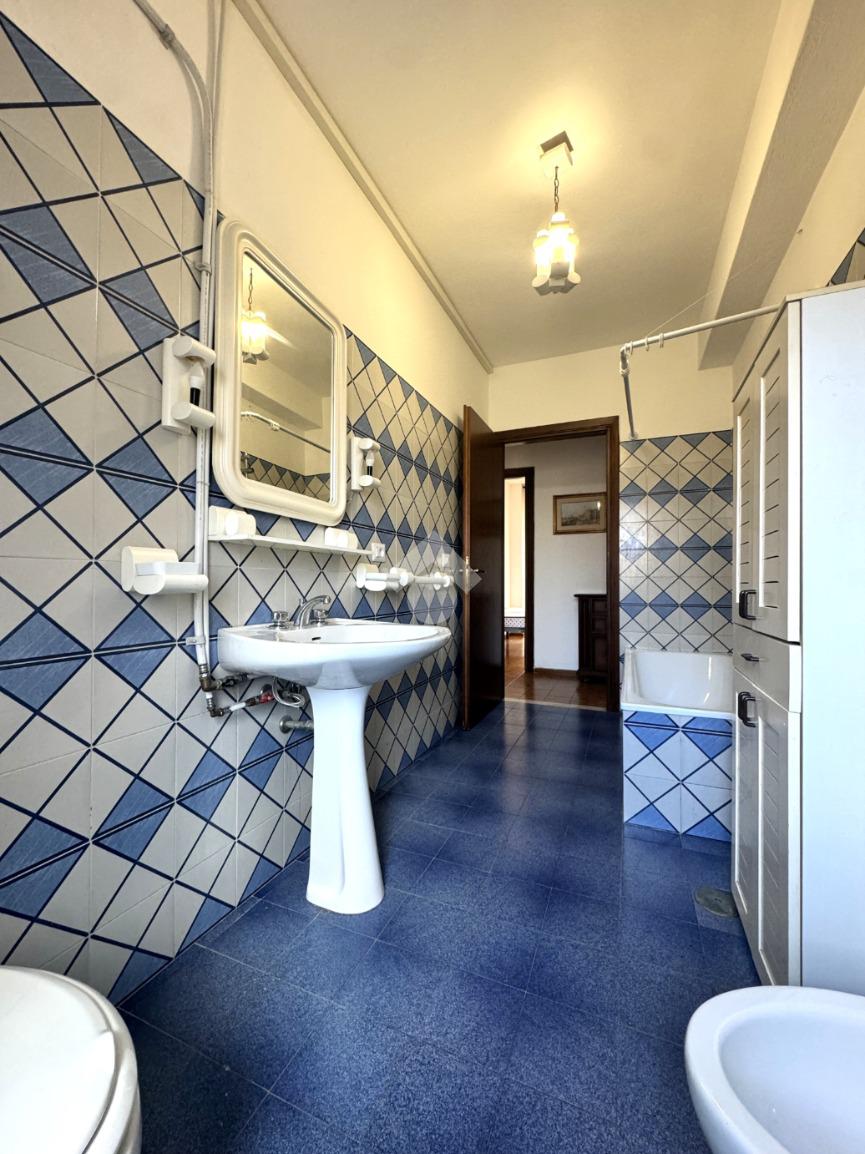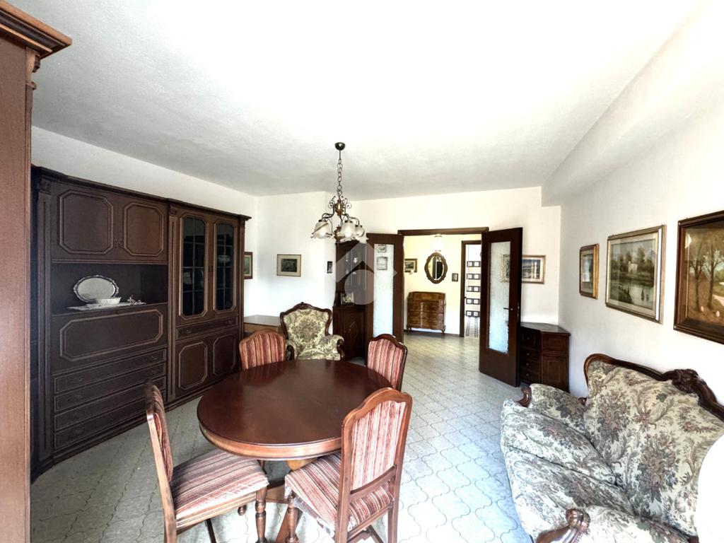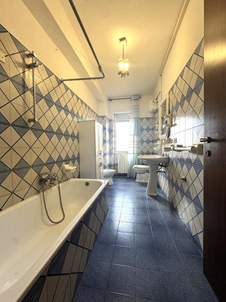 Tramite delle scale comuni o con comodo ascensore, si raggiunge il piano primo, dove si viene accolti da un ampio ingresso che collega tutti gli ambienti della casa. La zona giorno è costituita dal luminoso soggiorno sulla destra e dalla cucina abitabile sulla sinistra dell'ingresso. La zona notte si sviluppa su entrambi i lati del corridoio ed è costituita da quattro camere da letto, due bagni finestrati e un comodo ripostiglio. Al piano seminterrato è presente un ampio box auto con comodo accesso. L'immobile si presenta in buono stato manutentivo, è provvisto di riscaldamento autonomo a radiatori e viene venduto con arredi.