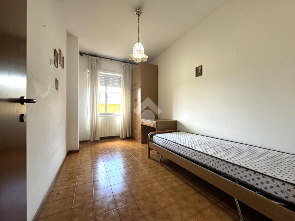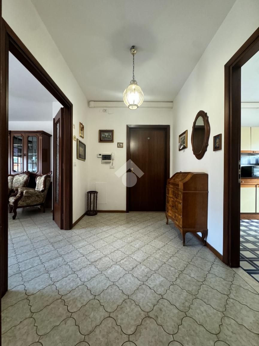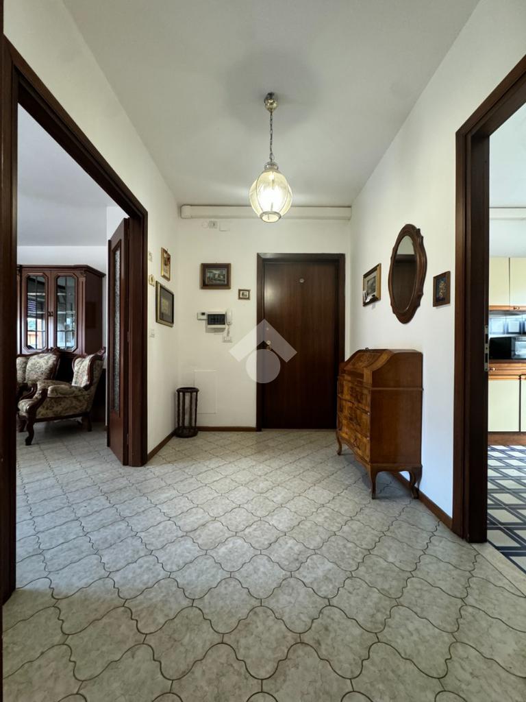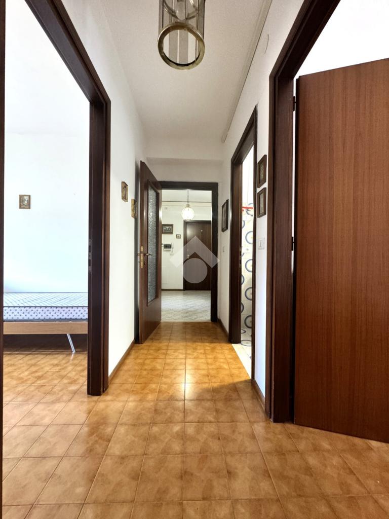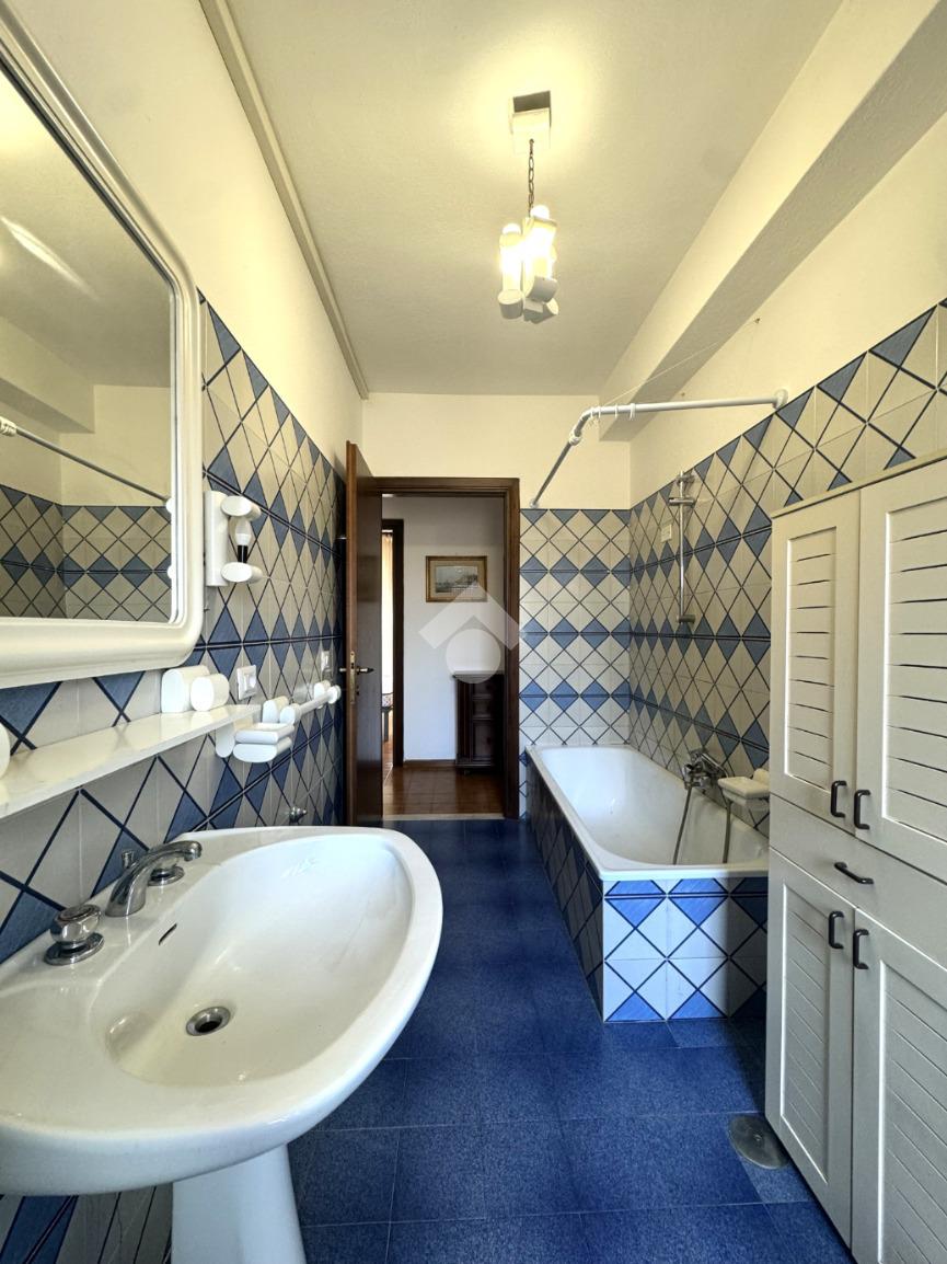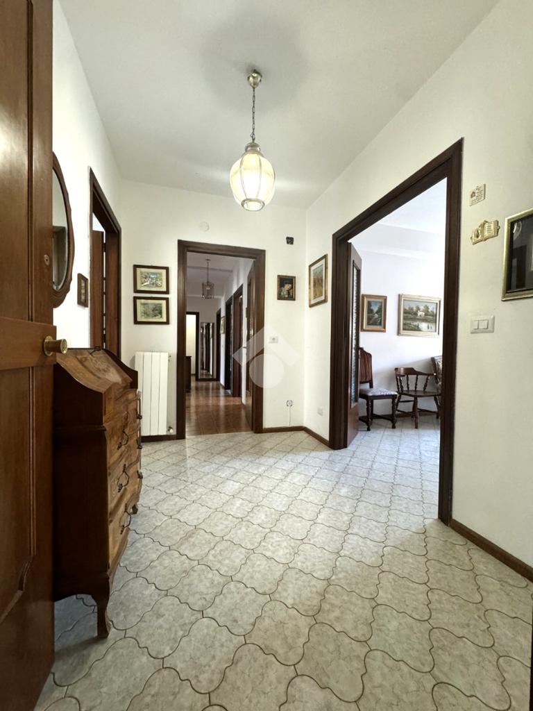 Tramite delle scale comuni o con comodo ascensore, si raggiunge il piano primo, dove si viene accolti da un ampio ingresso che collega tutti gli ambienti della casa. La zona giorno è costituita dal luminoso soggiorno sulla destra e dalla cucina abitabile sulla sinistra dell'ingresso. La zona notte si sviluppa su entrambi i lati del corridoio ed è costituita da quattro camere da letto, due bagni finestrati e un comodo ripostiglio. Al piano seminterrato è presente un ampio box auto con comodo accesso. L'immobile si presenta in buono stato manutentivo, è provvisto di riscaldamento autonomo a radiatori e viene venduto con arredi.