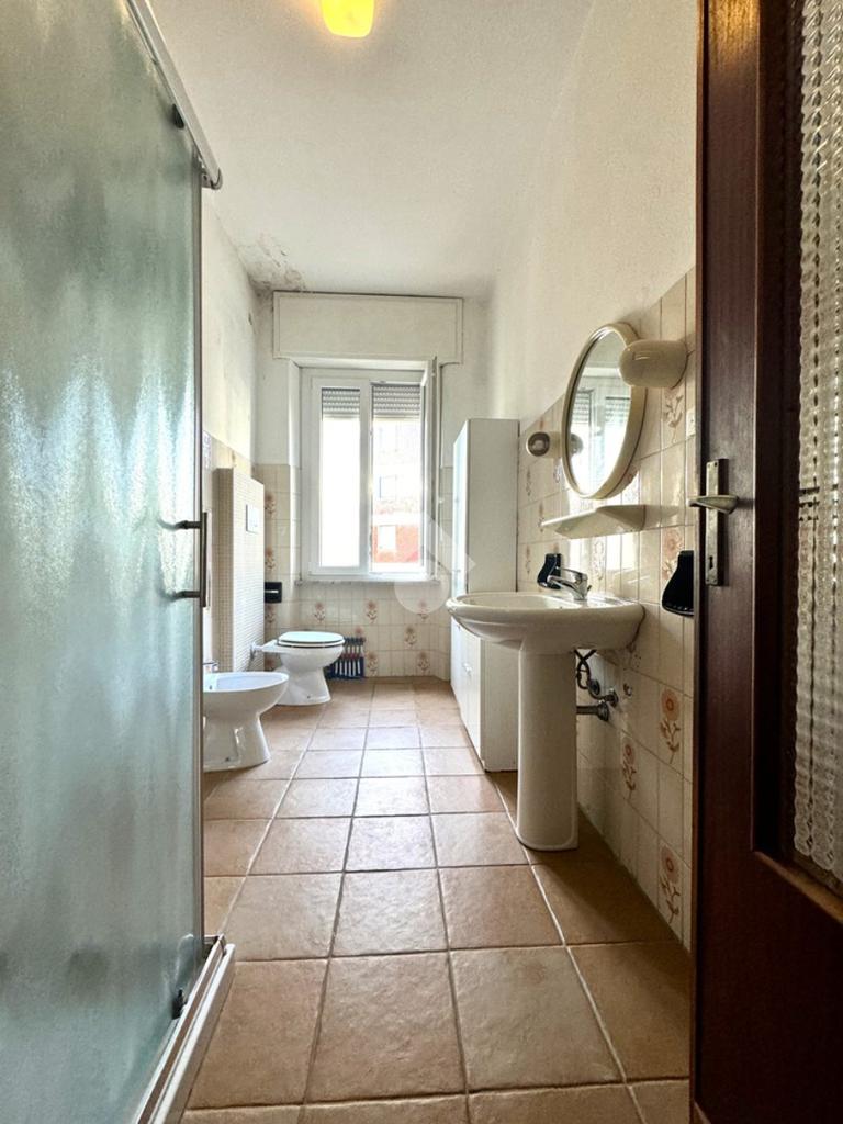NUORO - In Via Veneto, in stabile di poche unità e distante pochi minuti a piedi dal centro, appartamento esavano di ampia metratura. Percorse delle scale comuni, in cui è stato recentemente installato un montascale, si raggiunge il piano terzo: varcata la soglia d'ingresso, si viene accolti da un lungo andito che collega tutti gli ambienti della casa. Una cucina abitabile è dotata di parete cottura mentre una luminosa zona pranzo è separata da un soggiorno tramite una parete scorrevole. Proseguendo lungo l'andito di ingresso, si trovano le tre camere da letto, tutte di buona metratura e un bagno finestrato con antibagno. Adiacente la porta d'ingresso è presente una locale deposito finestrato mentre, soprastante e per l'intera ampiezza dell'immobile, una terrazza calpestabile e panoramica.