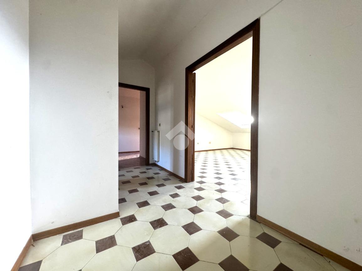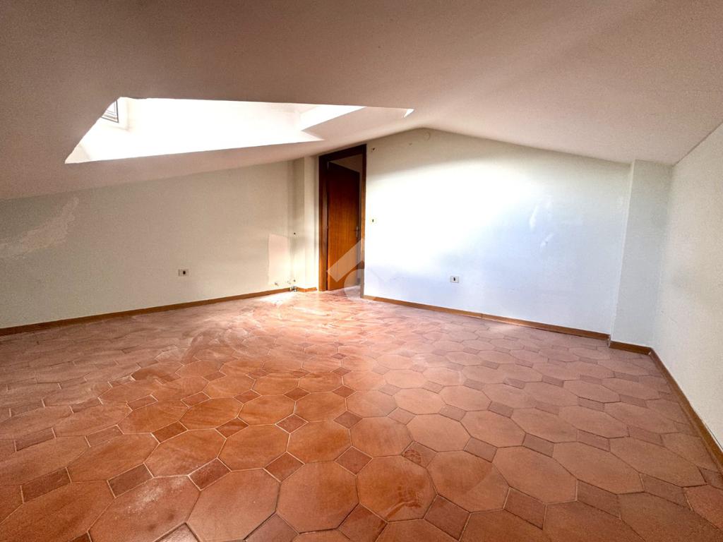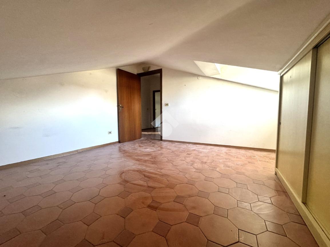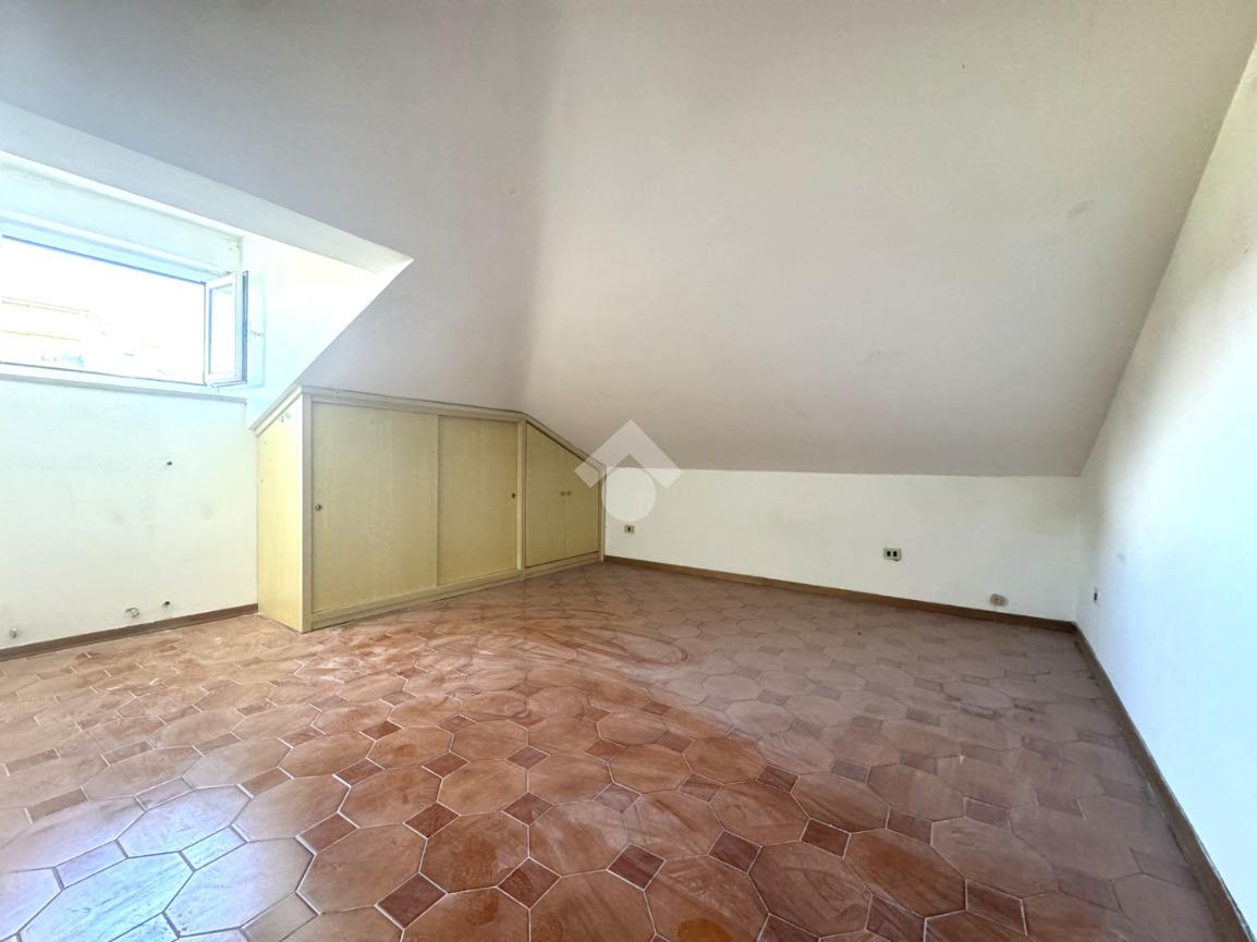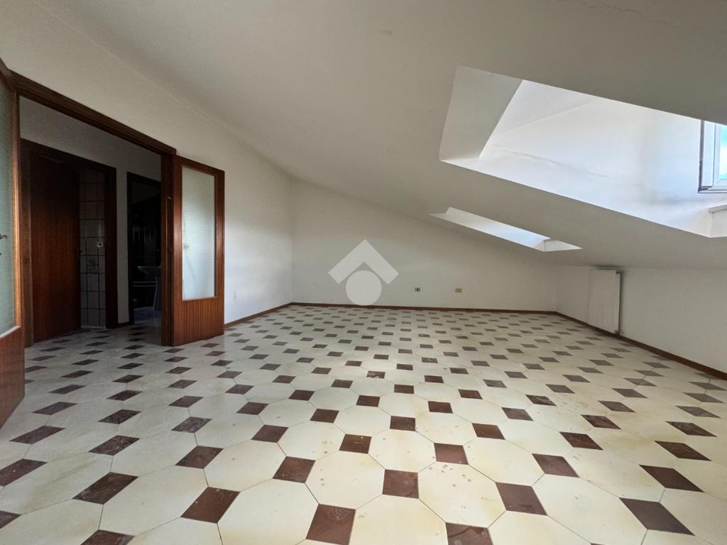NUORO - In Via Sant'Antioco, all'ultimo piano di uno stabile di poche unità, appartamento pentavano mansardato con due bagni. Con l'ausilio dell'ascensore, si raggiunge il terzo piano del condominio dal quale, con l'ultima rampa di scale condominiali, si raggiunge l'appartamento: varcata la soglia, si viene accolti da un ampio ingresso che collega tutti gli ambienti dell'immobile. Posti uno di fronte all'altra si trovano il soggiorno e la cucina, adiacente alla quale trova spazio il primo bagno. Di seguito, sempre con affaccio sul corridoio d'ingresso, si trovano le tre camere e il secondo bagno di fianco al primo.