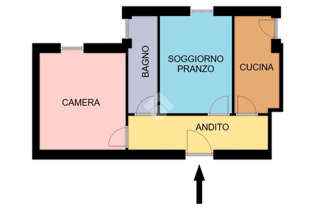 Varcata la soglia d'ingresso si viene accolti da un piccolo andito in cui affacciano tutti gli ambienti della casa, costituiti da un'ampia camera da letto, un soggiorno-pranzo, un bagno finestrato con doccia e un piccolo cucinotto con affaccio su piccolo balcone.