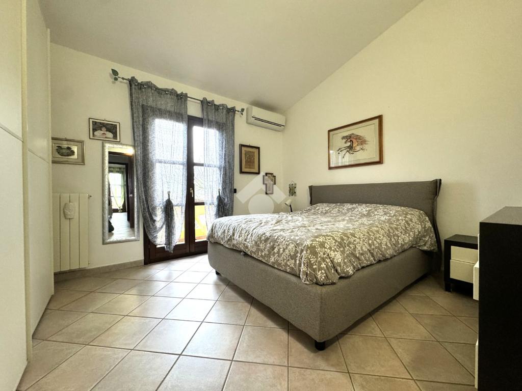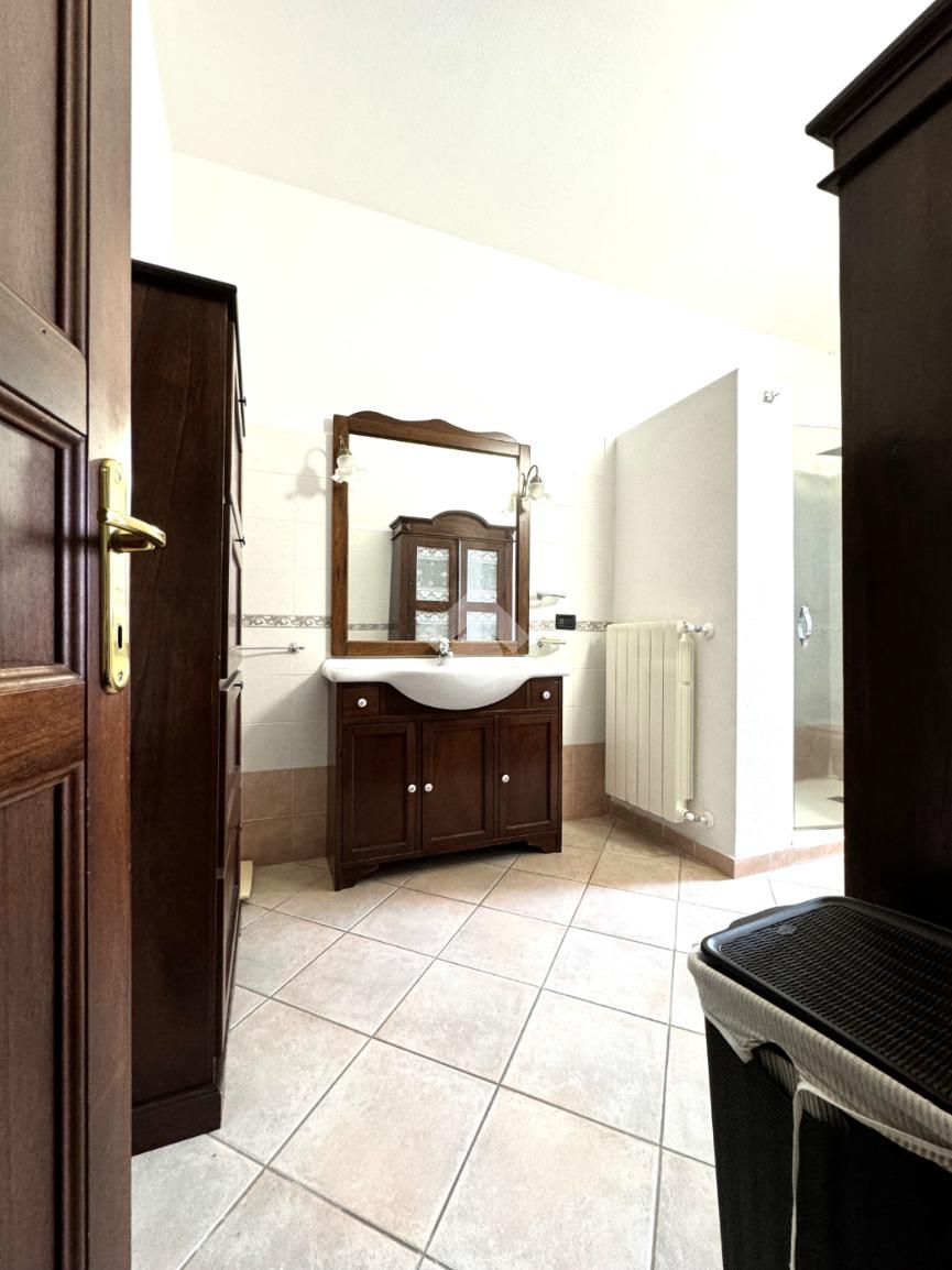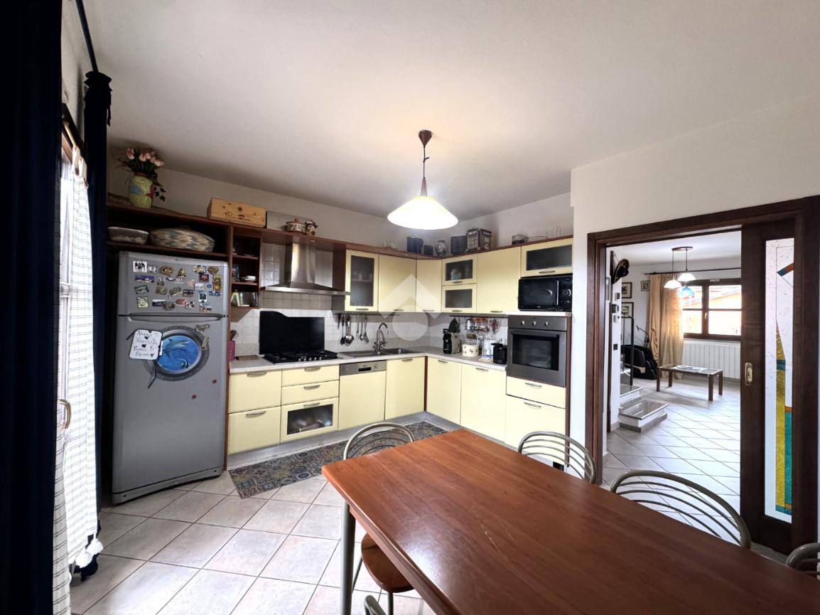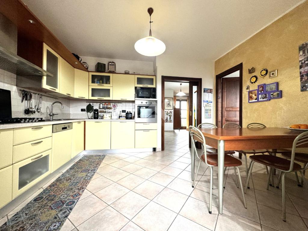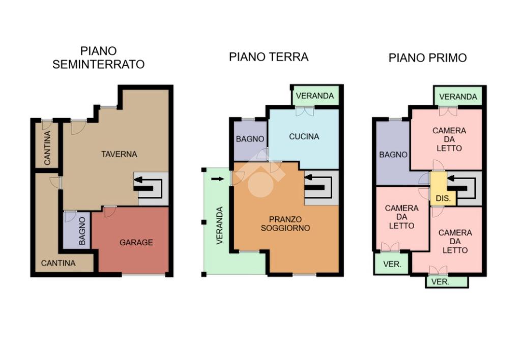 Edificata in lotto di circa 330 metri quadri, la proprietà è contornata da un muro di cinta con tre diversi ingressi, due carrabili e uno pedonale: i due ingressi carrabili consentono il posteggio di più auto sia nel cortile che direttamente nel garage seminterrato. Una volta attraversata la veranda, si giunge all'ingresso della casa al piano terra: questo livello è dominato da un'importante e luminoso pranzo-soggiorno separato dalla cucina abitabile con balcone e dal bagno finestrato. Una comoda scala in muratura permette di raggiungere il piano primo, in cui trovano spazio tre ampie camere da letto, tutte dotate di affaccio su veranda di pertinenza esclusiva, e lo spazioso bagno finestrato. Sempre con accesso dall'interno tramite scala, ma anche con apertura diretta sul giardino, nel seminterrato trova spazio una taverna completa di bagno, due locali cantina e box auto collegato attualmente adibito a stanza da letto. L'immobile si presenta in ottimo stato manutentivo, viene venduto privo di arredi e completo di impianto fotovoltaico. Il riscaldamento è autonomo con alimentazione a gas e predisposizione per gasolio.
