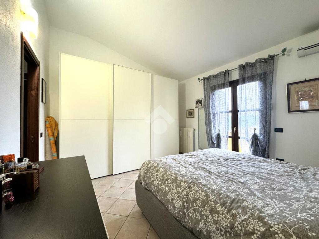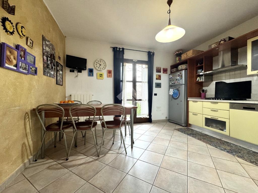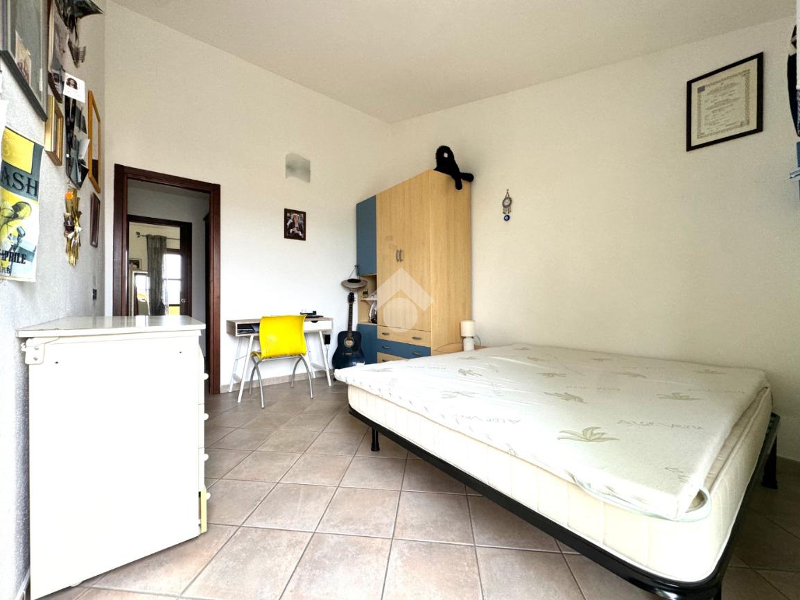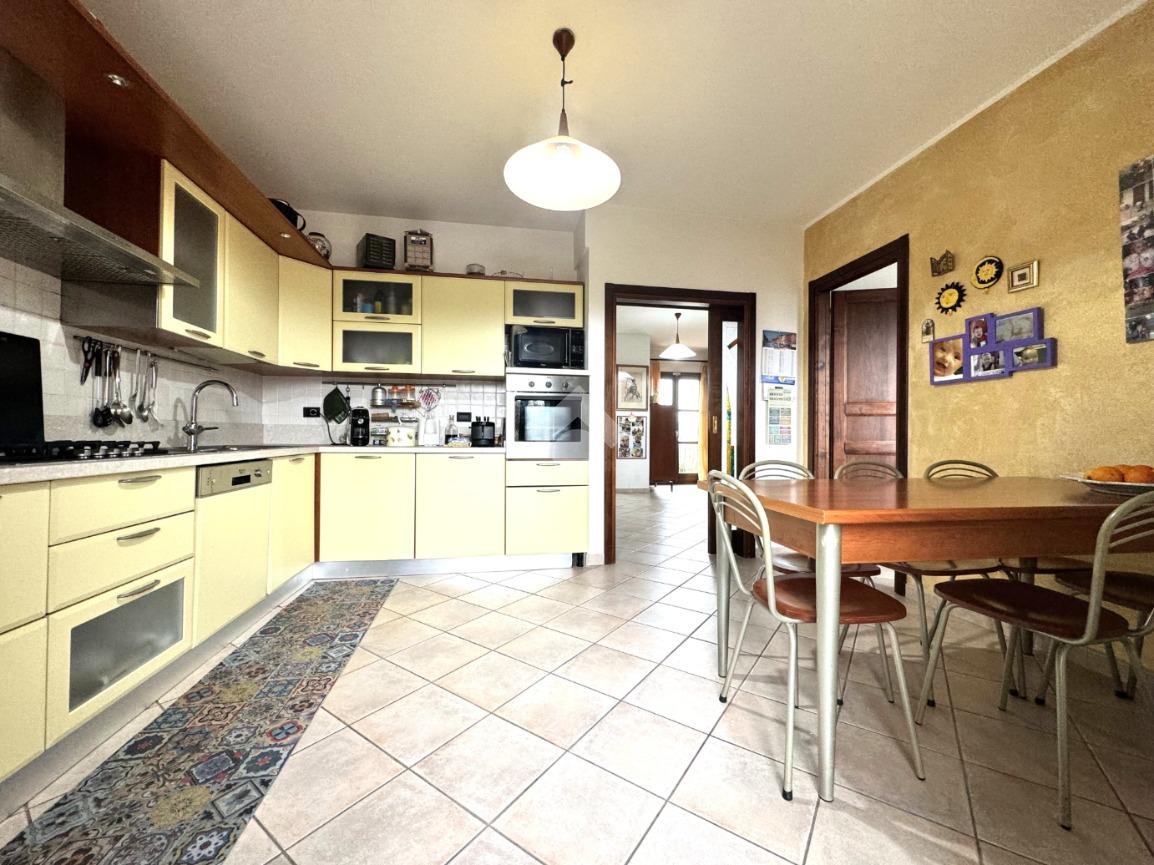 Edificata in lotto di circa 330 metri quadri, la proprietà è contornata da un muro di cinta con tre diversi ingressi, due carrabili e uno pedonale: i due ingressi carrabili consentono il posteggio di più auto sia nel cortile che direttamente nel garage seminterrato. Una volta attraversata la veranda, si giunge all'ingresso della casa al piano terra: questo livello è dominato da un'importante e luminoso pranzo-soggiorno separato dalla cucina abitabile con balcone e dal bagno finestrato. Una comoda scala in muratura permette di raggiungere il piano primo, in cui trovano spazio tre ampie camere da letto, tutte dotate di affaccio su veranda di pertinenza esclusiva, e lo spazioso bagno finestrato. Sempre con accesso dall'interno tramite scala, ma anche con apertura diretta sul giardino, nel seminterrato trova spazio una taverna completa di bagno, due locali cantina e box auto collegato attualmente adibito a stanza da letto. L'immobile si presenta in ottimo stato manutentivo, viene venduto privo di arredi e completo di impianto fotovoltaico. Il riscaldamento è autonomo con alimentazione a gas e predisposizione per gasolio.
